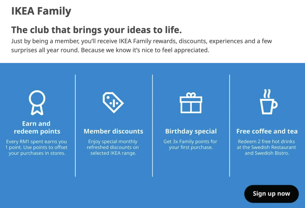 The program creates a real sense of community around the brand. Customers don’t just shop at IKEA, they feel like they’re part of the “IKEA Family.”