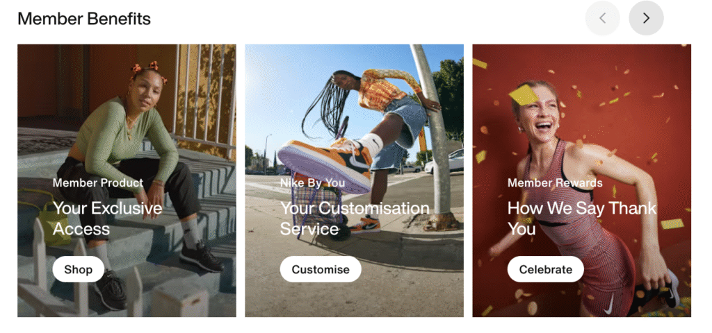 Instead of offering points or discounts, Nike gives members exclusive access to new product drops, events, and personalized training content through the Nike app.