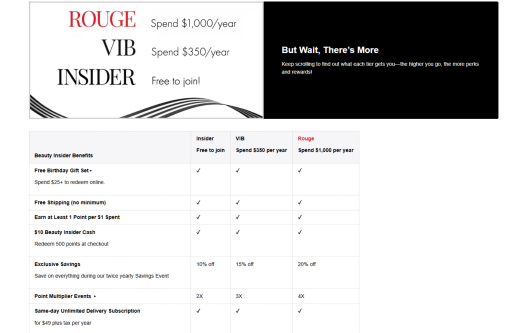 Here’s the psychology behind it: tiered programs play on our natural drive for status and achievement. When customers see they’re “VIB” but could move up to “Rouge,” they feel inspired to spend a little more to reach that next level.