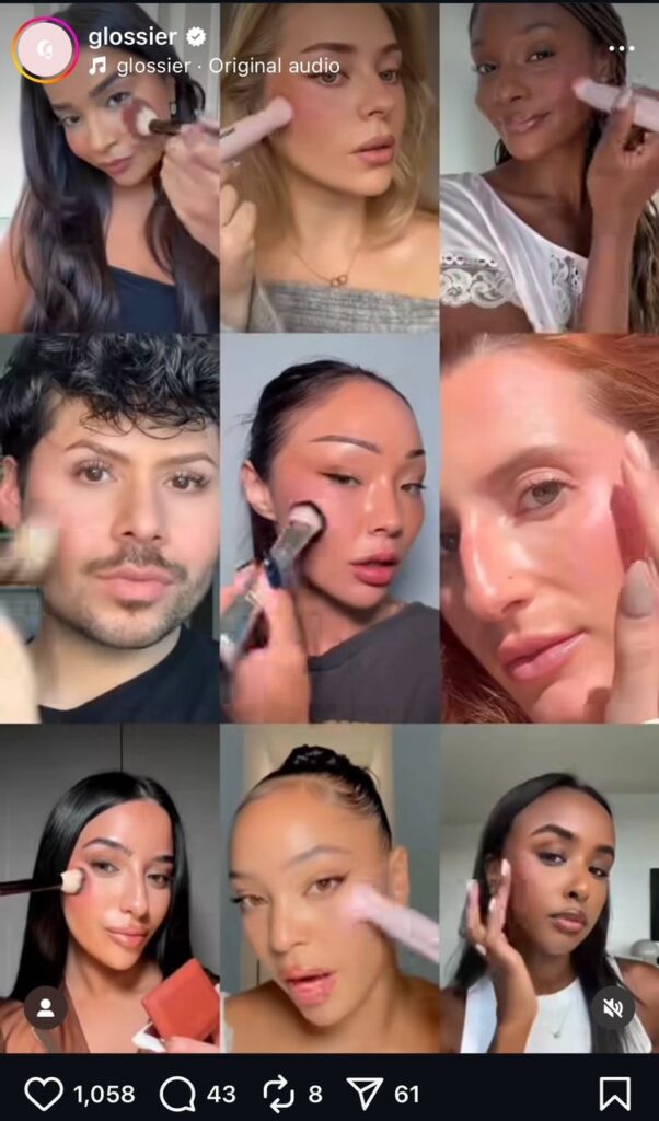 Glossier has mastered community-led storytelling — reposting customer photos and reviews to turn buyers into brand ambassadors.